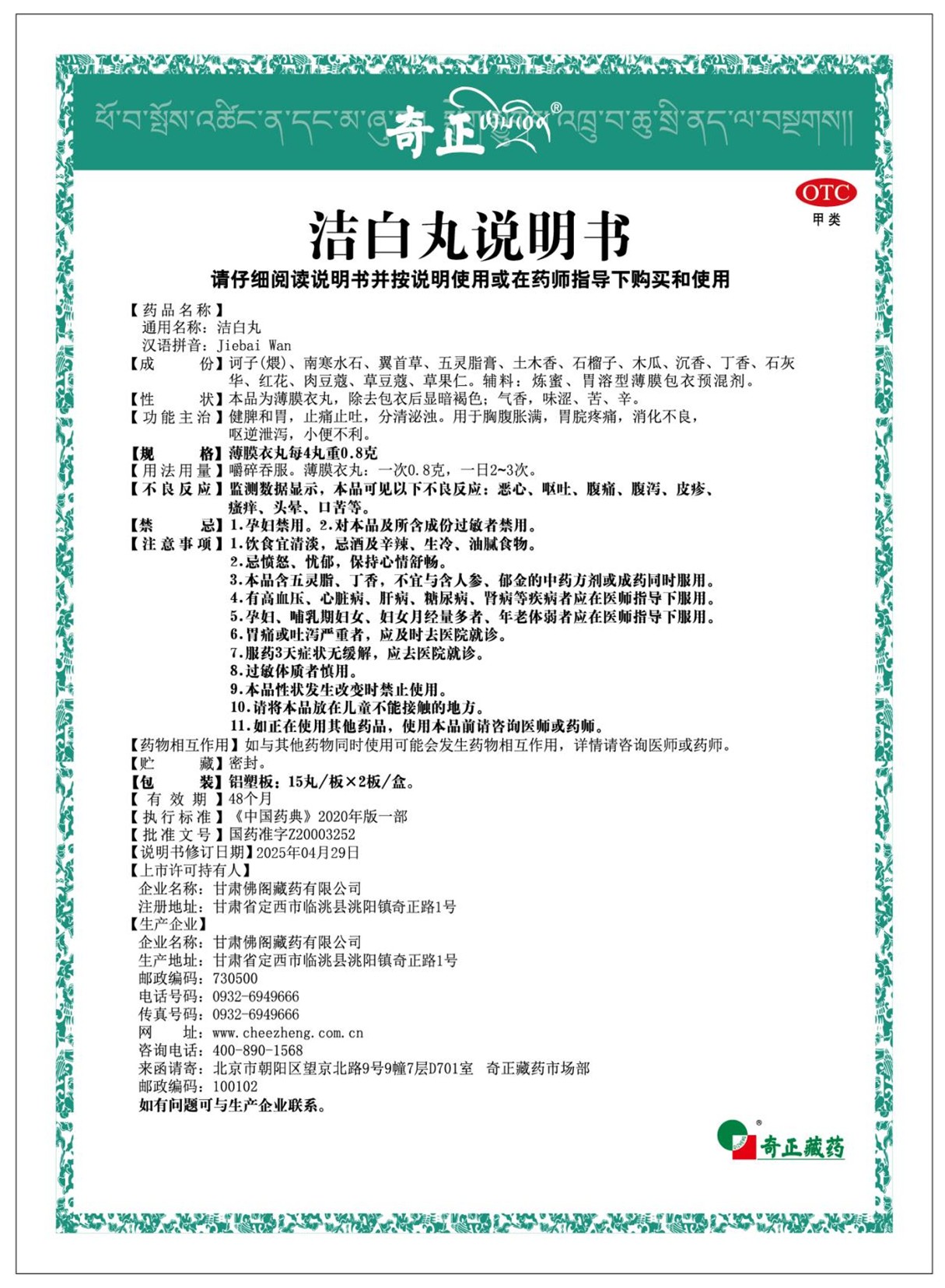 甘肅佛閣藏藥有限公司按照潔白丸(每4丸重0.8g)獲批的國家藥品監(jiān)督管理局藥品補(bǔ)充申請(qǐng)通知書內(nèi)容,對(duì)潔白丸(每4丸重0.8g)藥品說明書中的【不良反應(yīng)】、【禁忌】和【注意事項(xiàng)】進(jìn)行了修訂及備案,現(xiàn)將新版說明書予以發(fā)布,如您需要更為詳細(xì)的信息或有特定的問題,可以聯(lián)系客服400-890-1568或撥打企業(yè)電話:0932-6949666。